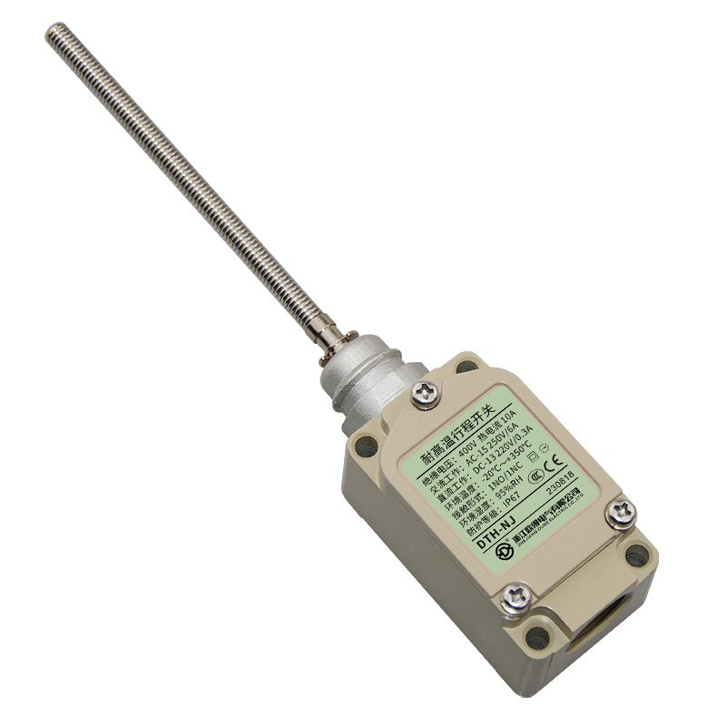 • DTH-NJ耐高溫行程開(kāi)關(guān),盤(pán)簧棒型,萬(wàn)向式、通用直立型,長(zhǎng)壽命2回路限位開(kāi)關(guān)。適用于鋼鐵、焦化、電廠、紡織、醫(yī)療、化工、鋁材、塑料、玻璃、輪胎等高溫加工機(jī)械設(shè)備,作位移電路通斷信號(hào)檢測(cè)控制。