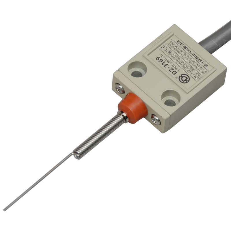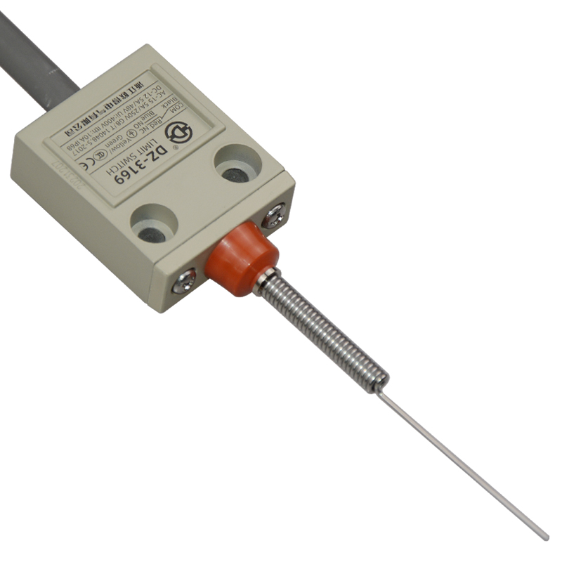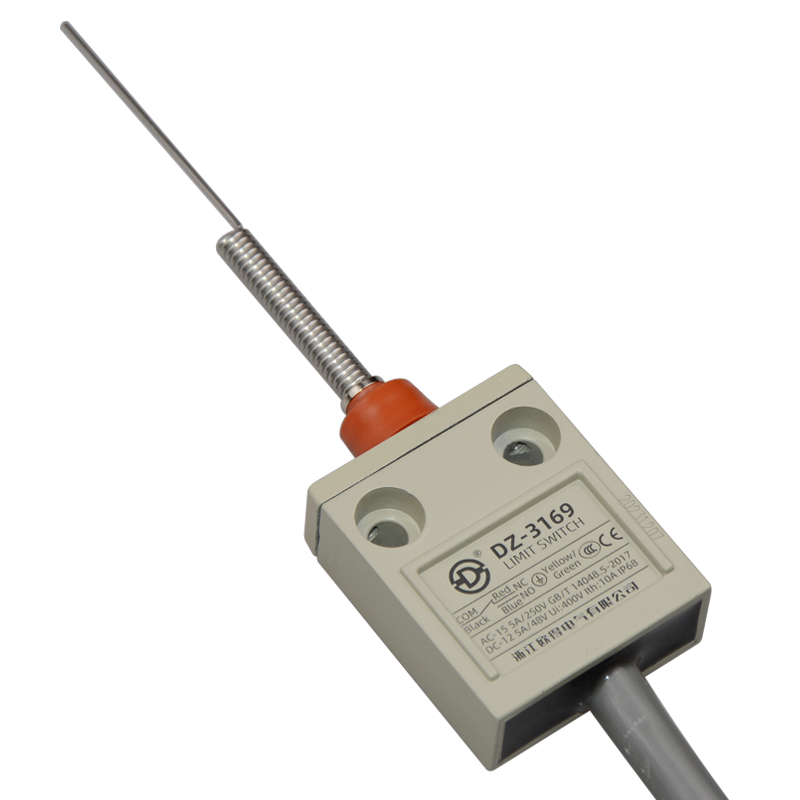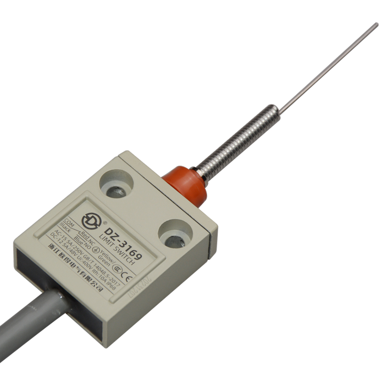 • DZ-3169防水行程開關,針狀盤簧型,萬向式,通用直立型,小型、薄形、IP68防護等級,樹脂與耐油軟線融合牢固,高度密封性兼具的緊湊型限位開關。適用于積水、潮濕環(huán)境下的機械設備,作位移電路通斷信號檢測控制。