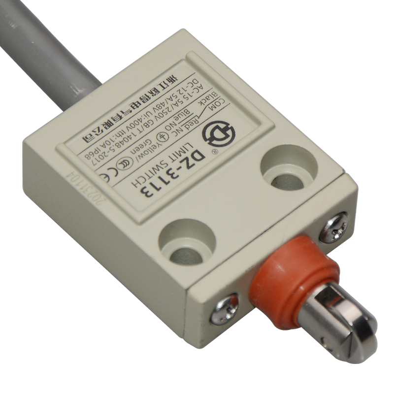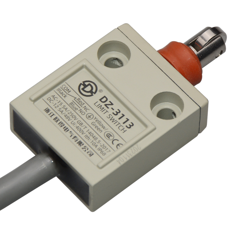 • DZ-3113防水行程開關(guān),密封式橫向滾輪柱塞型,通用直立型,小型、薄形、IP68防護(hù)等級(jí),樹脂與耐油軟線融合牢固,高度密封性兼具的緊湊型限位開關(guān)。適用于積水、潮濕環(huán)境下的機(jī)械設(shè)備,作位移電路通斷信號(hào)檢測(cè)控制。