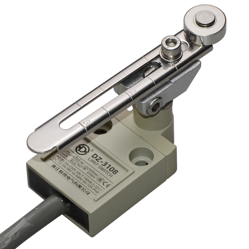 • DZ-3108防水行程開關(guān),可調(diào)式滾輪·擺桿型,通用直立型,小型、薄形、IP68防護(hù)等級(jí),樹脂與耐油軟線融合牢固,高度密封性兼具的緊湊型限位開關(guān)。適用于積水、潮濕環(huán)境下的機(jī)械設(shè)備,作位移電路通斷信號(hào)檢測(cè)控制。