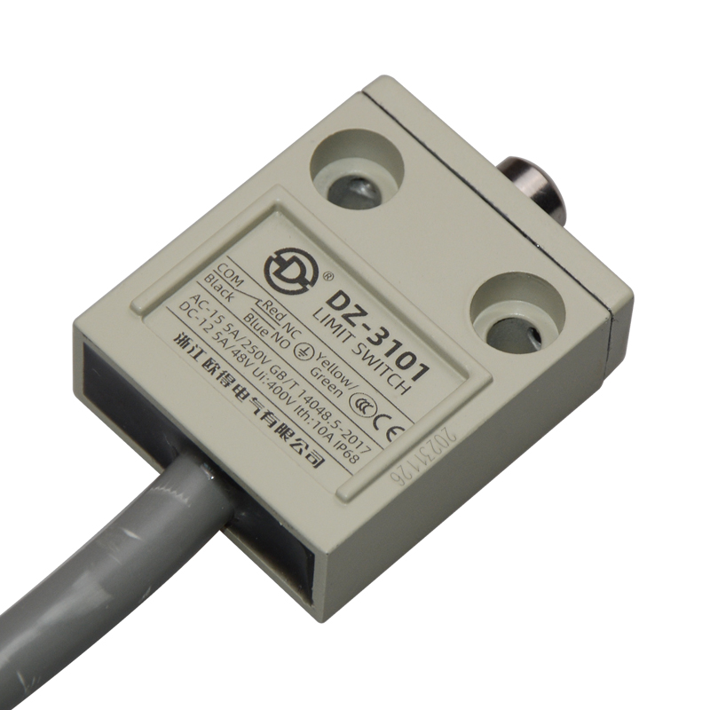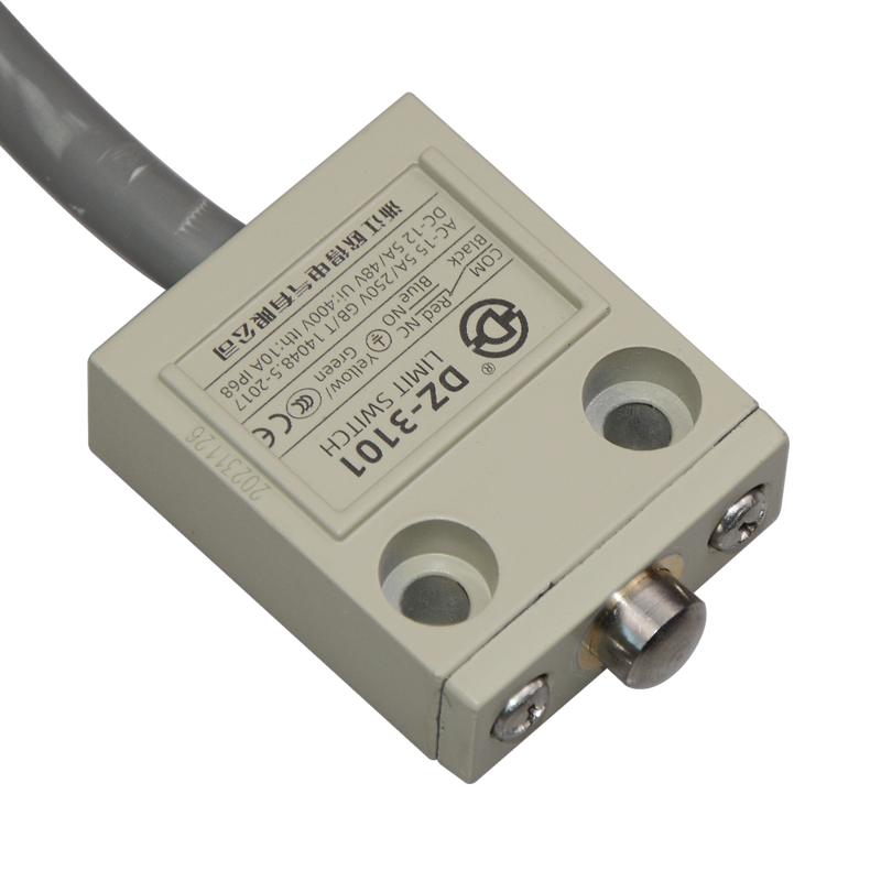 • DZ-3101防水行程開關(guān),針狀柱塞式,通用直立型,小型、薄形、IP68防護(hù)等級,樹脂與耐油軟線融合牢固,高度密封性兼具的緊湊型限位開關(guān)。適用于積水、潮濕環(huán)境下的機(jī)械設(shè)備,作位移電路通斷信號檢測控制。