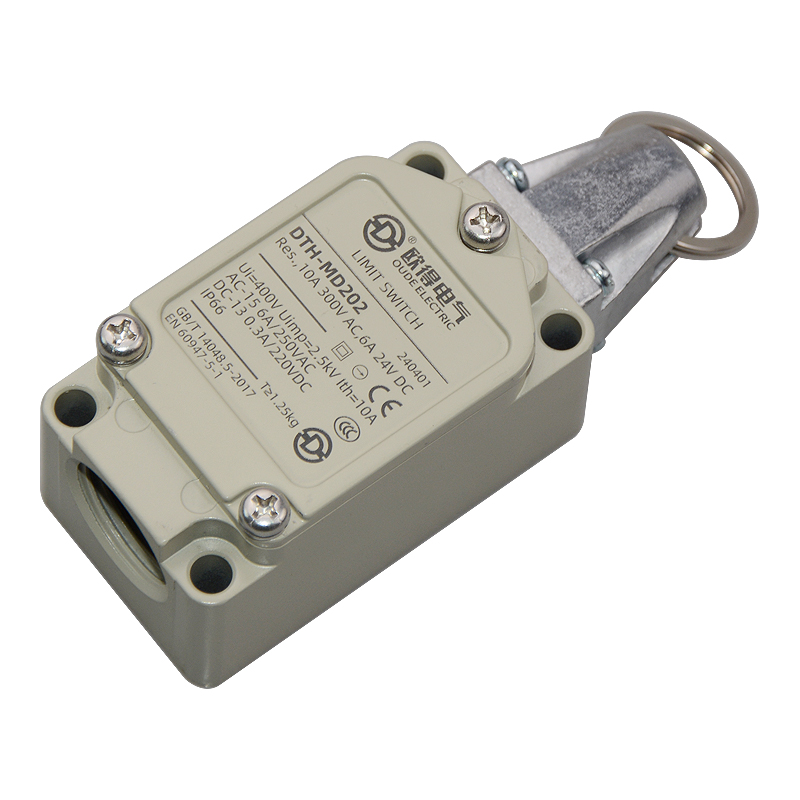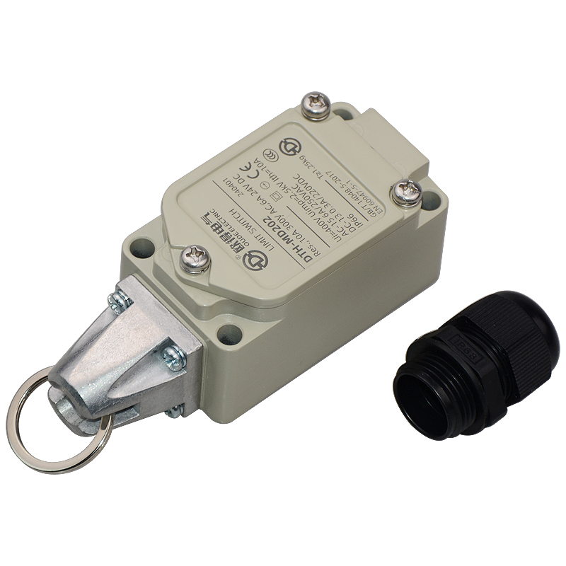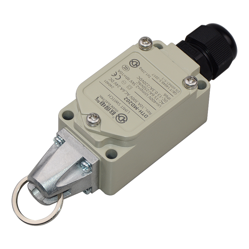 • DTH-MD202安全拉繩開(kāi)關(guān),拉動(dòng)式、自動(dòng)復(fù)位,2回路(1常開(kāi)1常閉),金屬殼體,堅(jiān)固耐用。主要控制輸送帶、流水線急停限位。額定絕緣電壓400伏,發(fā)熱電流10安培,交流工作電壓250伏、工作電流6安培,直流工作電壓220伏、工作電壓0.3安培,防護(hù)等級(jí)IP66(安裝電纜防水接頭后)。