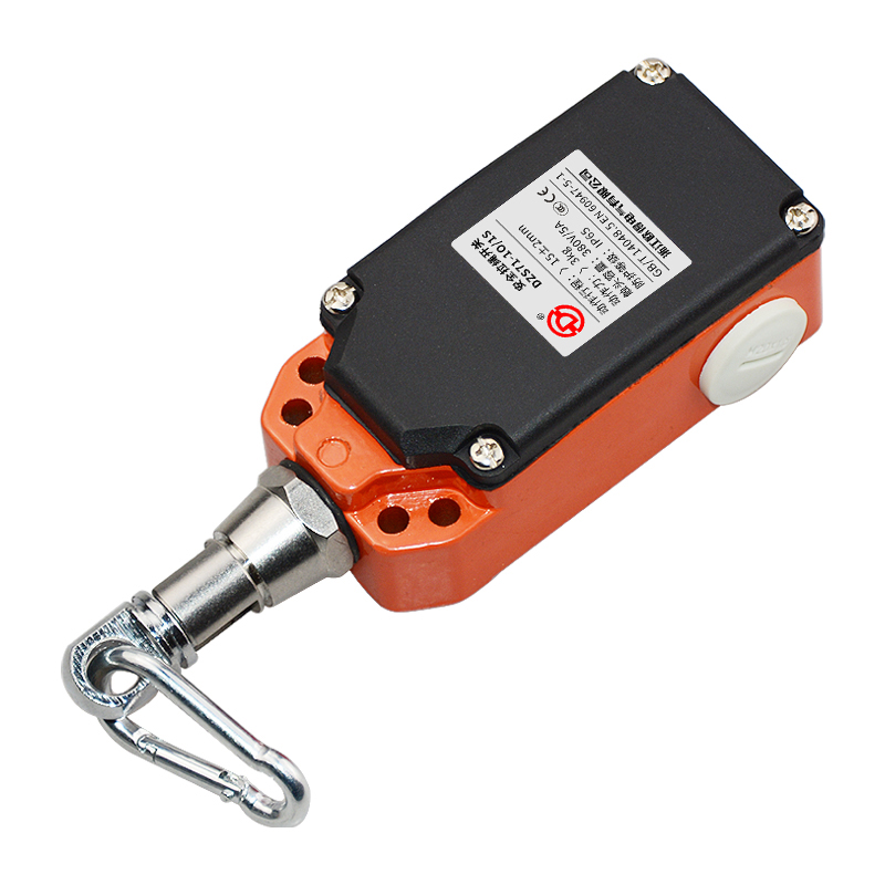 • DZS71-1O/1S安全拉繩開關(guān),拉動(dòng)式、自復(fù)位型,2回路(1常開1常閉),金屬殼體、塑膠蓋板。適用于流水線、輸送帶、高空作業(yè)車等機(jī)械設(shè)備位移信號(hào)控制,保護(hù)操作員不受機(jī)器傷害。額定絕緣電壓400伏,發(fā)熱電流10安培,工作電壓交流380伏、電流0.8安培,直流220伏、電流0.15安培,防護(hù)等級(jí)IP65,戶外使用請(qǐng)注意防水措施。