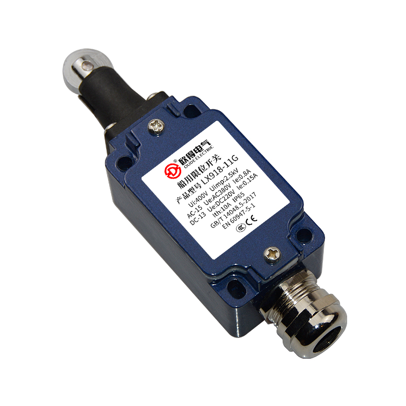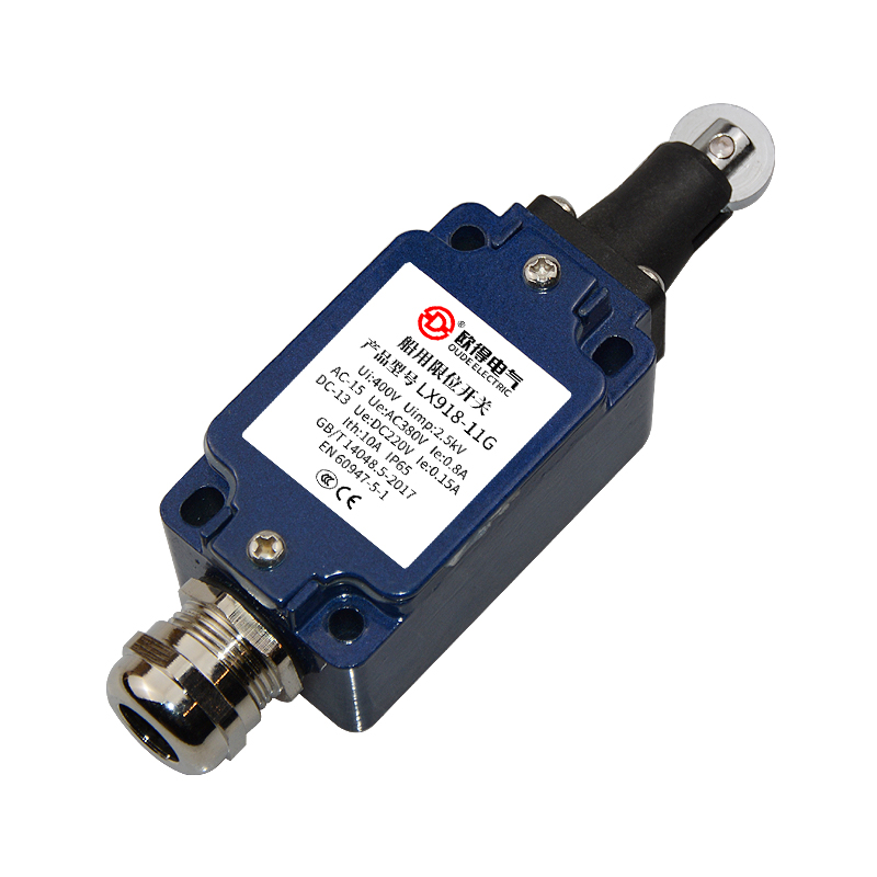• LX918-11G船用限位開關 滾輪柱塞式 歐得行程開關。額定絕緣電壓400伏,發(fā)熱電流10安培,工作電壓電流交流380伏、0.8安培,直流220伏、0.15安培,防護等級IP65。適用于船舶、海洋平臺、港口碼頭等各種機械設備在電器設備控制回路中能限制行程的限位開關。